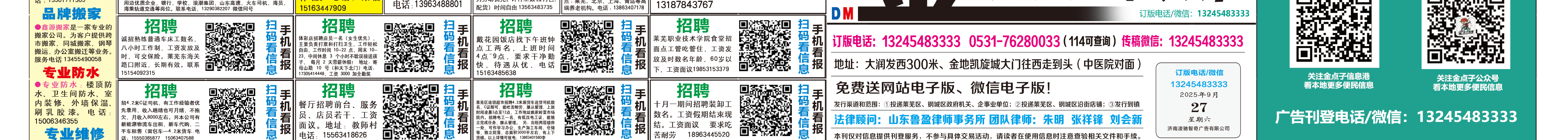 《莱芜金点子广告》报纸9月27日三、四版 http://www.jindianzi.net 发布日期:2025/9/27 9:19:38 文章作者:莱芜金点子信息港