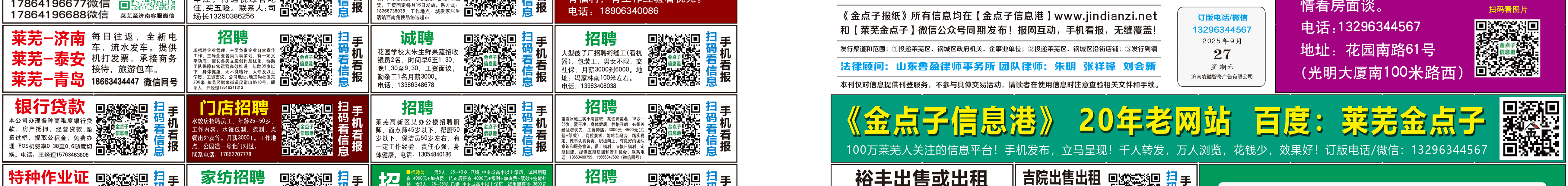 《莱芜金点子广告》报纸9月27日五、六版 http://www.jindianzi.net 发布日期:2025/9/27 9:26:30 文章作者:莱芜金点子信息港