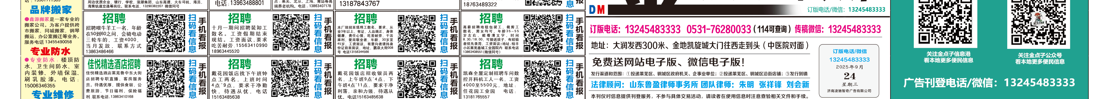 《莱芜金点子广告》报纸9月24日三、四版 http://www.jindianzi.net 发布日期:2025/9/24 9:27:03 文章作者:莱芜金点子信息港