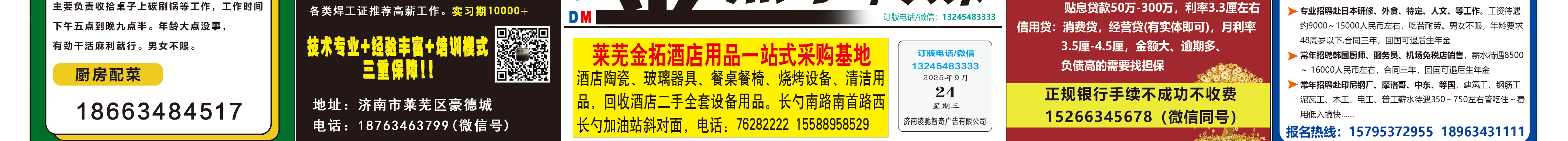 《莱芜金点子广告》报纸9月24日一、二版 http://www.jindianzi.net 发布日期:2025/9/24 9:28:46 文章作者:莱芜金点子信息港