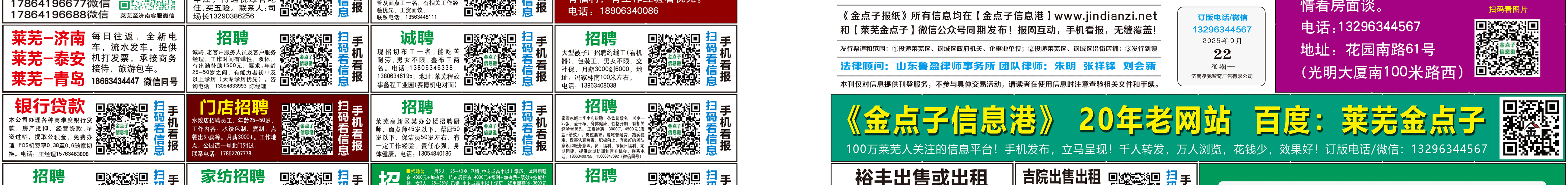 《莱芜金点子广告》报纸9月22日五、六版 http://www.jindianzi.net 发布日期:2025/9/22 8:01:12 文章作者:莱芜金点子信息港