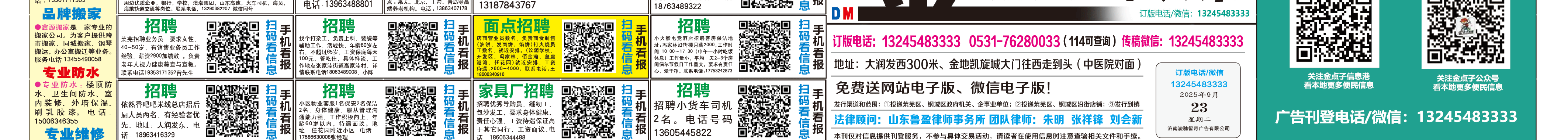 《莱芜金点子广告》报纸9月23日三、四版 http://www.jindianzi.net 发布日期:2025/9/23 9:38:51 文章作者:莱芜金点子信息港